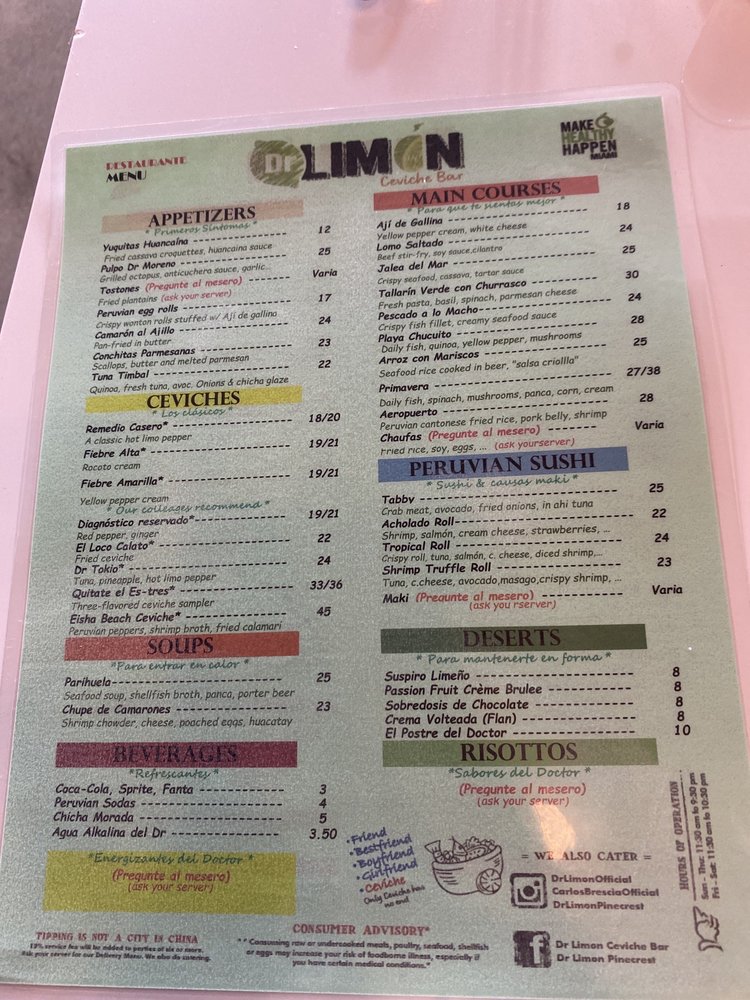 Dr. Limon Ceviche Bar in Pinecrest, a Peruvian gem, offers a diverse menu with vegan options and happy hour specials in a casual and trendy setting. From tantalizing tiraditos like Ahi Tuna Tamarind to classic ceviches such as Anestesico Mix, every dish is crafted with precision and flavor.